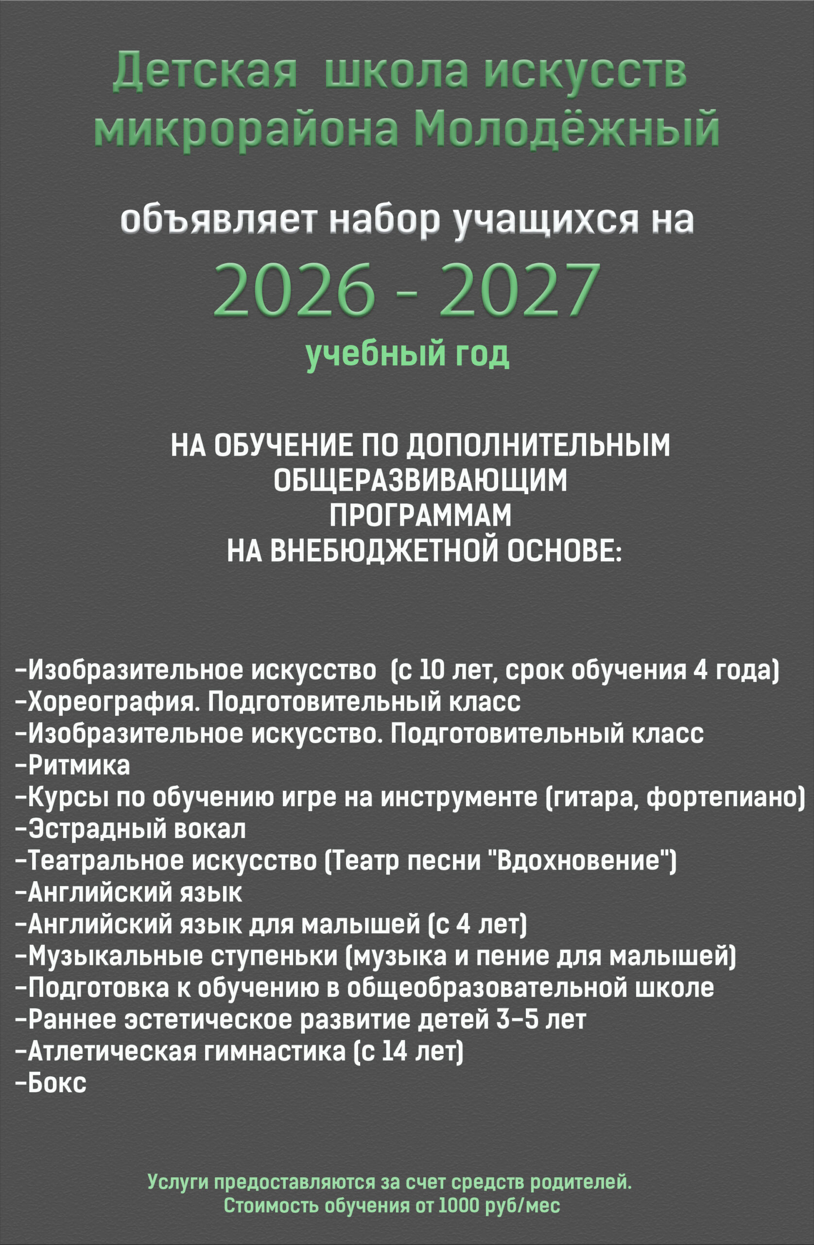«Набор на 2026 — 2027 учебный год»: